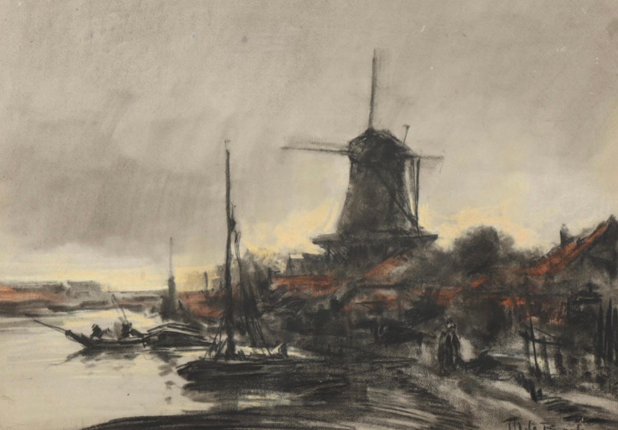 Théophile de Bock, schilder van de Haagse School, richtte zijn blik op het Nederlandse landschap. In zijn aquarellen van de Zuiderzee vangt hij licht en water met een heldere, transparante toets; in zijn krijttekeningen toont hij de verstilde eenvoud van dijken, boerderijen en dorpsranden. Een deel van zijn Zuiderzee-werk bevindt zich in Panorama Mesdag, waar hij als jong schilder bovendien zelf meewerkte aan het monumentale panorama.